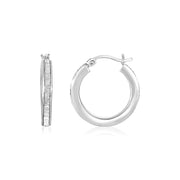 Sterling Silver Small Round Tube Hoop Earrings with Glitter Texture